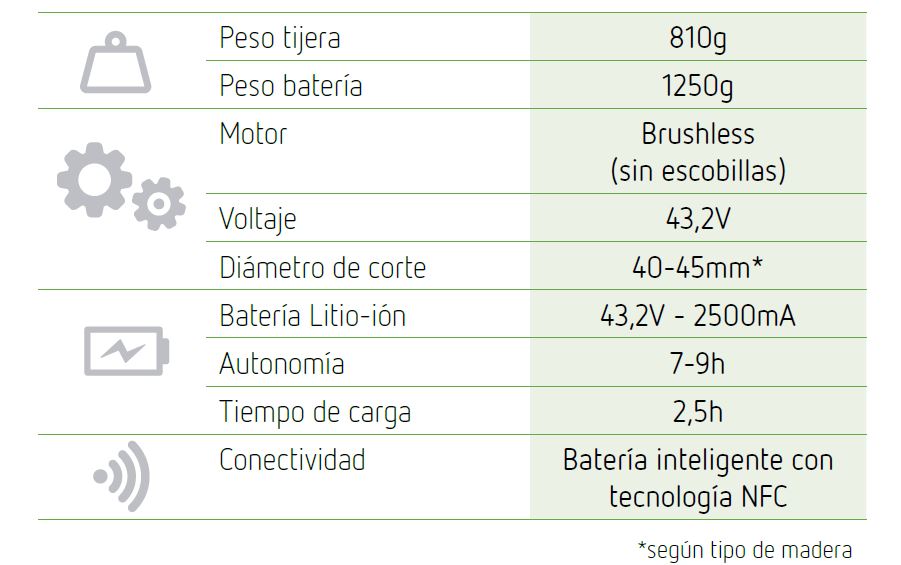 makas elektrik ECOPRUNING EC50 yetiştirme geniş alanlar budama uzatmak için tasarlanmıştır. Dişli sistemi ve raf başlığı için son derece güçlü, hızlı ve güvenilir makas. Elinde çok hafif, rahat ve iyi dokunuş, her tür budama için mükemmel bir müttefik olur.