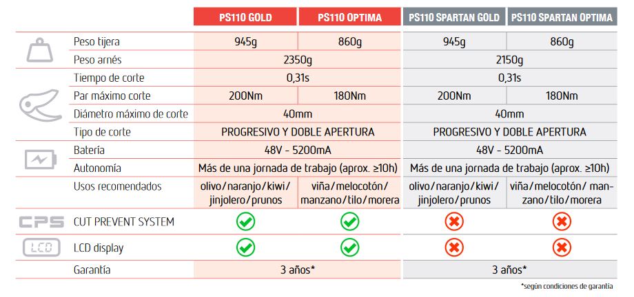 Profesyonel budama , yoğun budama için CPS'li PS110 makasları , gücü, kesme hızı, servo kontrol ile hassasiyeti, düşük tüketimi ve kendini yüksek performans makasları arasında daha yüksek bir seviyede konumlandırarak , memnuniyetle yerine getirmesiyle karakterizedir. Profesyonel budama en yüksek talepleri.